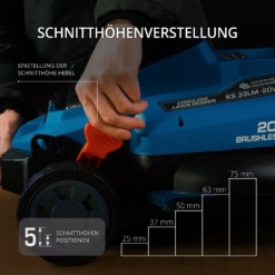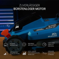 • „Könner & Söhnen" KS 33LM-20V akumuliatorinė vejapjovė su 20V sistema – kompaktiškas ir ekologiškas sprendimas mažesniems sodams iki 300 m².