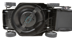 - Tvirtas plastikinis korpusas, aukščio reguliavimas viena svirtimi, dideli ratai su rutuliniais guoliais sklandžiam pjovimui.