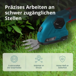 - Kompaktiškas ir lengvas 2in1 įrankis: greitai pakeiskite žolės kirpimo ašmenis į krūmų genėjimo ašmenis.