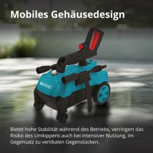 - Komplektacija: Purškimo pistoletas su greita jungtimi, prailginimo vamzdis, reguliuojamas antgalis, rotacinis antgalis, 7 m aukšto slėgio žarna, 5 m maitinimo laidas, 550 ml putų purkštuvas, vandens filtras, valymo adata antgaliui