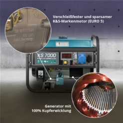 - „Könner & Söhnen" KS 7000 – galingas benzininis generatorius, idealiai tinkantis naudoti statybvietėse, sodybose ar kaip atsarginis maitinimo šaltinis.