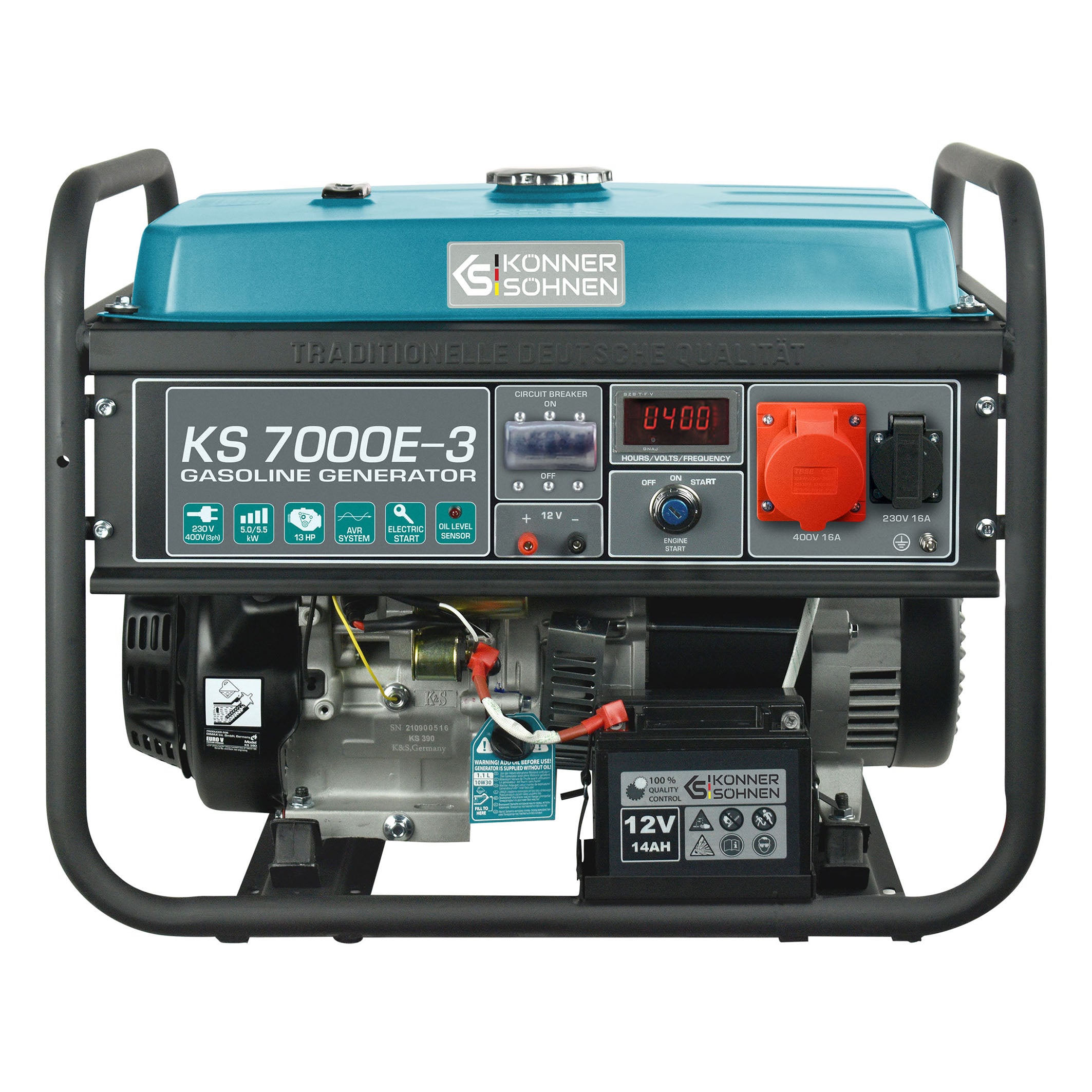- „Könner & Söhnen" KS 7000E-3 – tai trifazis benzininis generatorius, sukurtas tiekti elektros energiją didesniems prietaisams ir įrangai, reikalaujančiai 400V maitinimo.