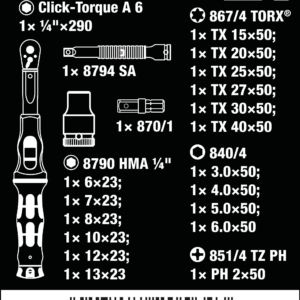 Dinamometrinis raktas su priedais Wera Click-Torque A 6 Set 1, 2.5-25 Nm, 20 vnt