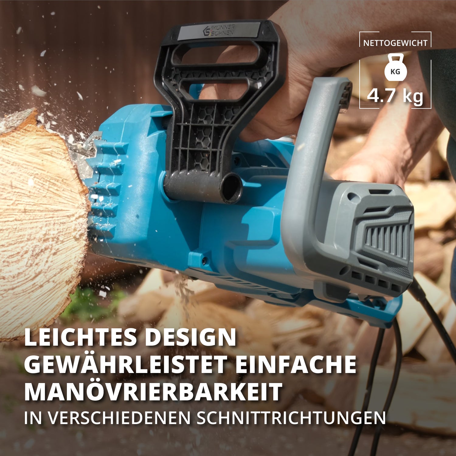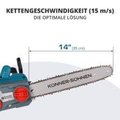 - „Könner & Söhnen" KS CS1800-14 – tai galinga 1800 W elektrinė grandininė pjūklas, skirta efektyviam medienos pjovimui namuose ir sode.