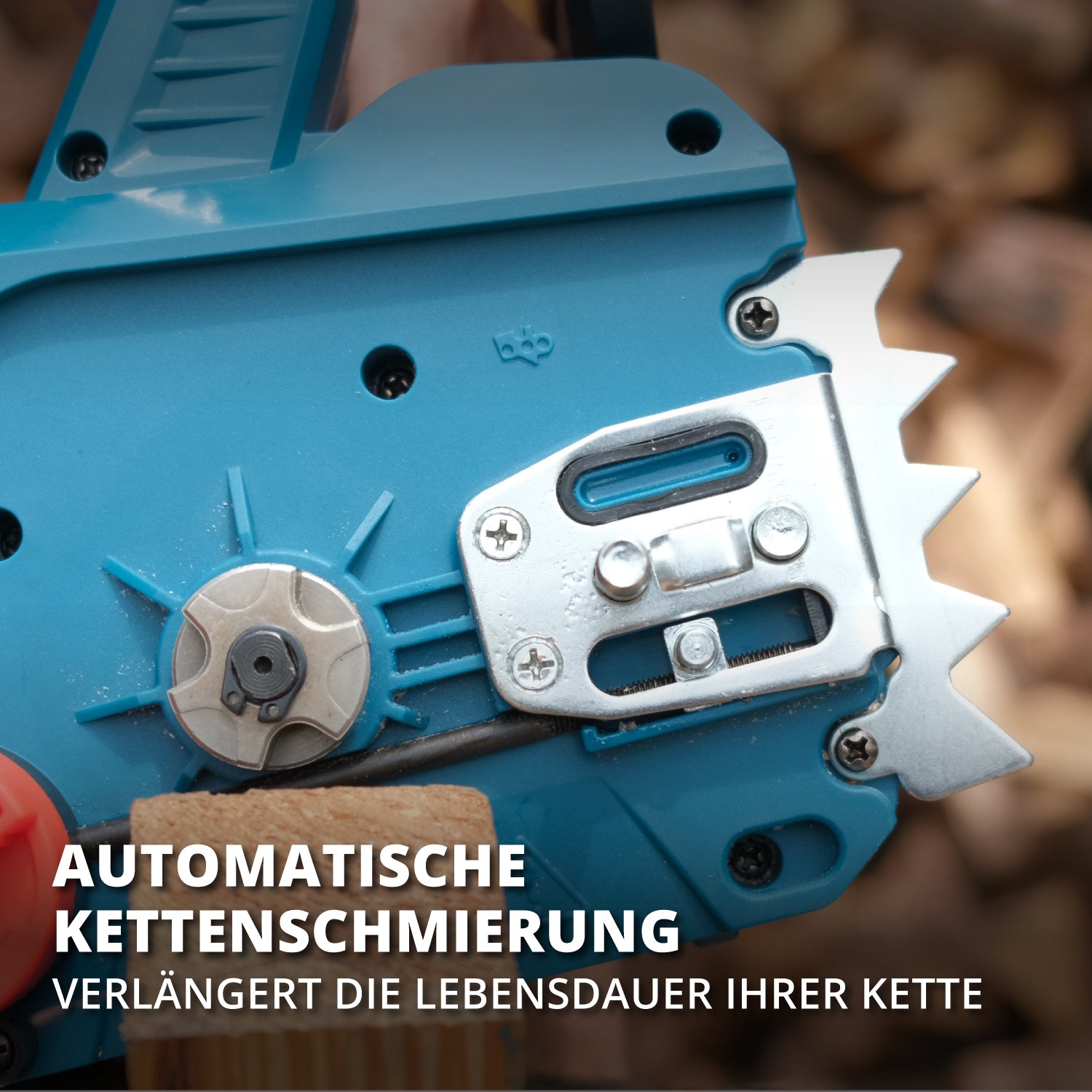 - Įrankis turi patogią grandinės įtempimo sistemą be įrankių ir dvigubą saugos stabdžių sistemą, užtikrinančią saugų darbą.