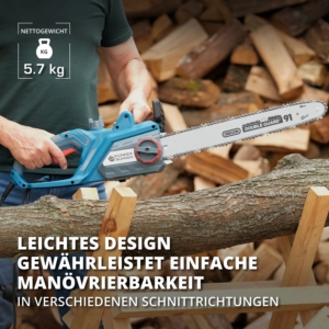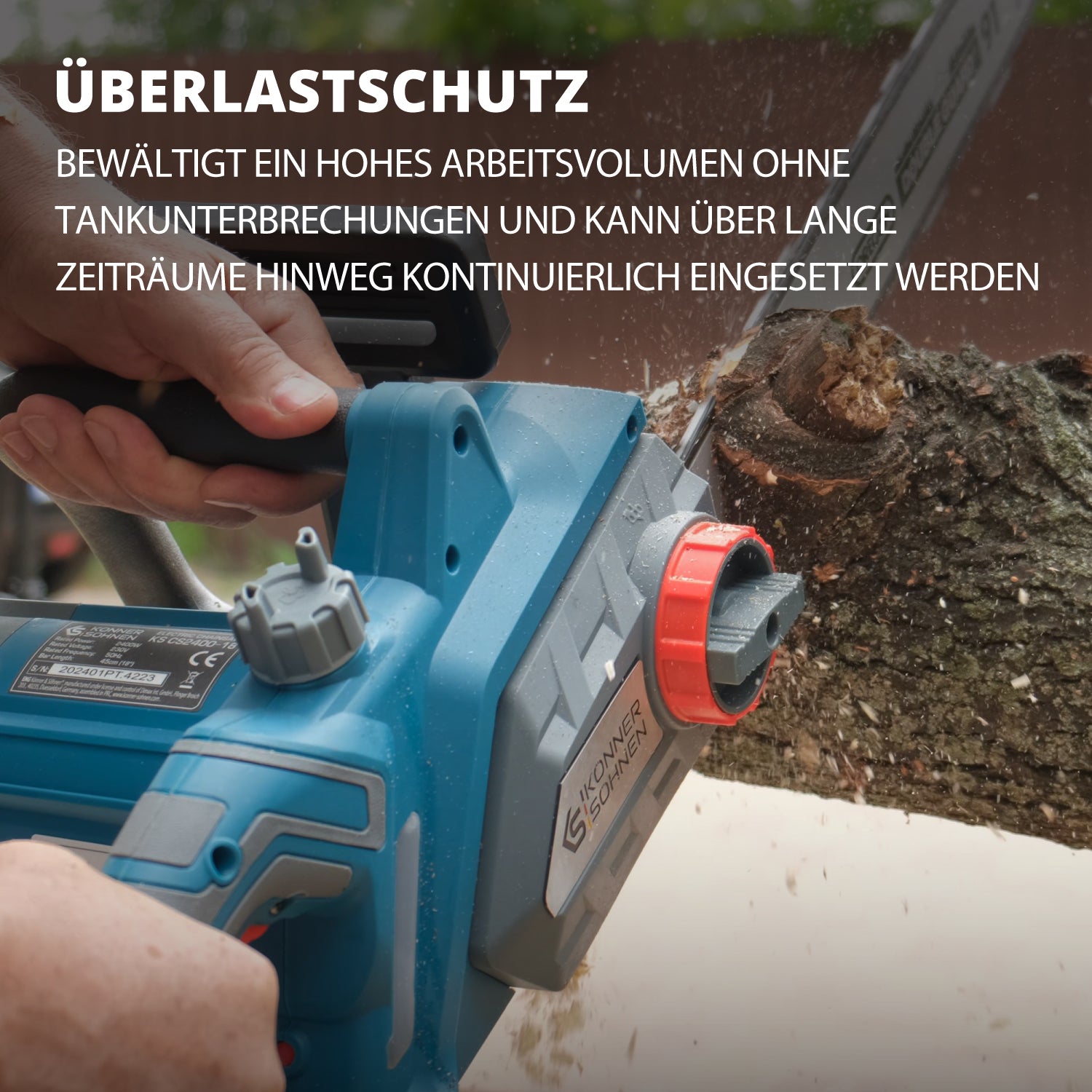 • Galingas 2400 W elektrinis grandininis pjūklas „Könner & Söhnen" KS CS2400-18, skirtas efektyviam ir greitam medienos apdirbimui.