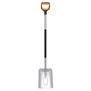 - Plati, kampu išlenkta darbinė plokštė leidžia perkelti medžiagas greitai ir mažiau įtempiant nugarą.