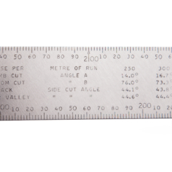 - Iš grūdinto plieno pagamintas korpusas, aiškios graviruotos skalės ir integruotos lentelės su stogo nuolydžių bei gegnių pjūvių duomenimis paverčia šį kampainį nepakeičiamu įrankiu staliams ir stogdengiams.