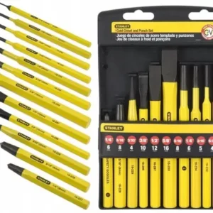 - Šis kokybiško chromo vanadžio plieno išmušėjų ir kaltų rinkinys iš Stanley® yra idealus starto rinkinys, sudarytas iš 12 dalių.