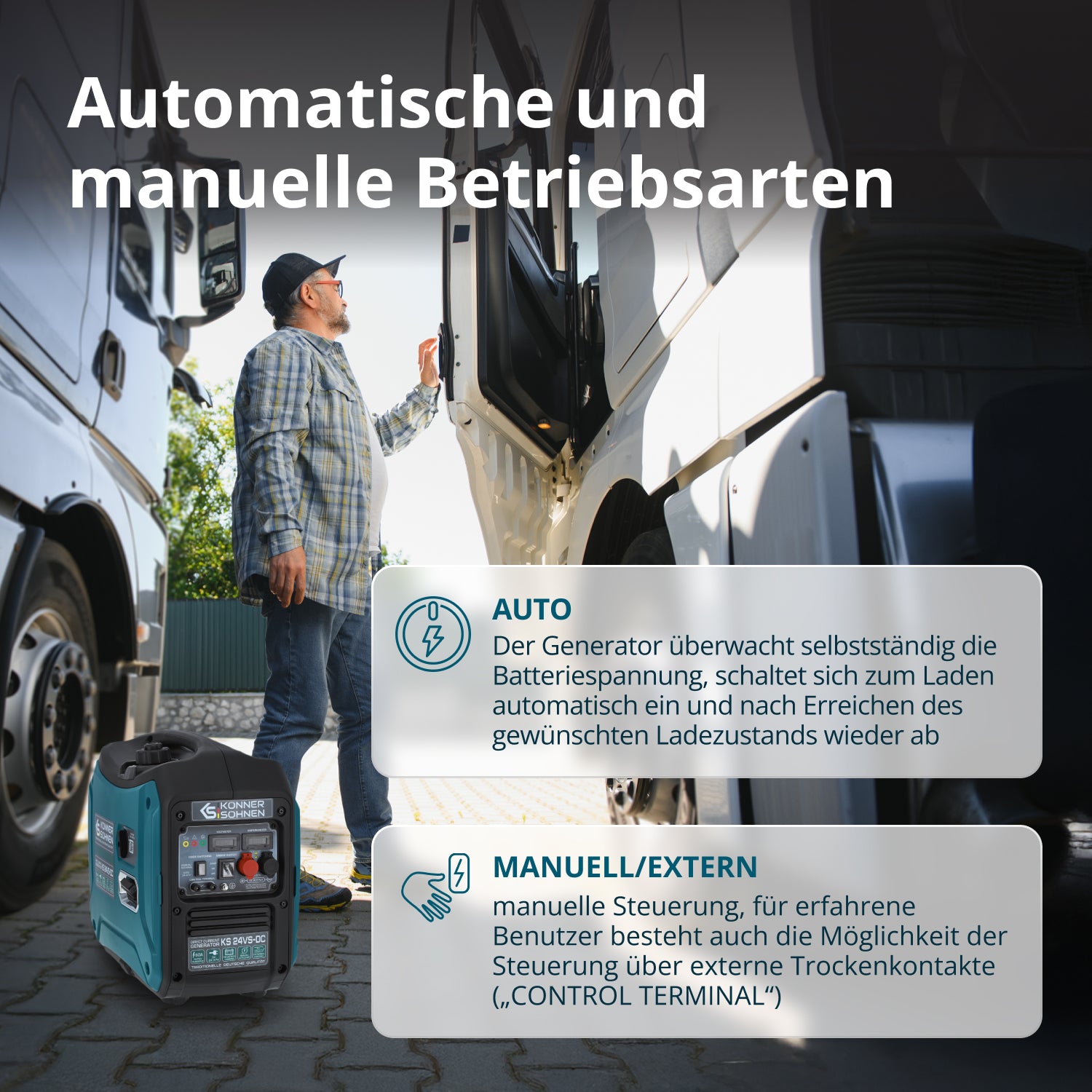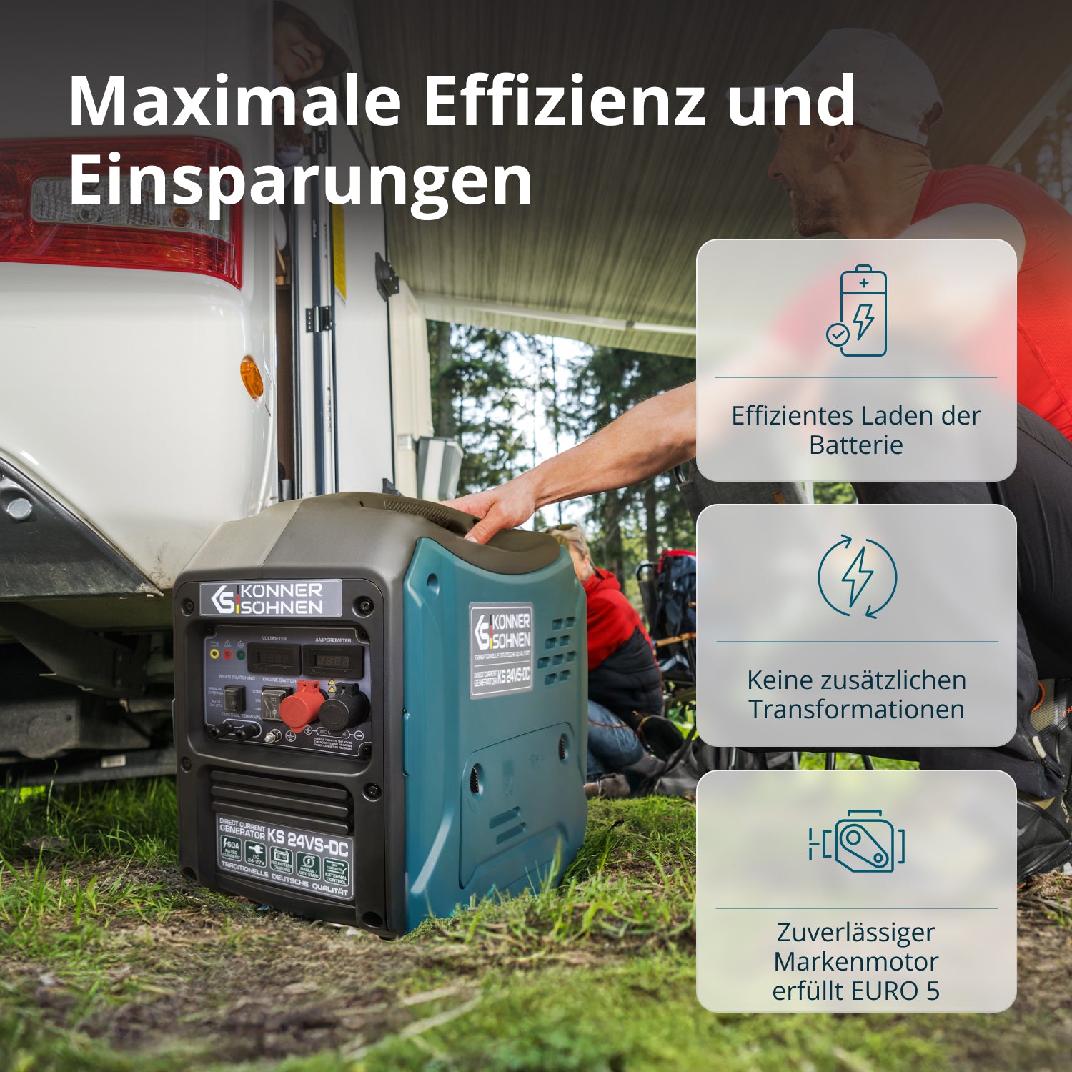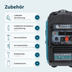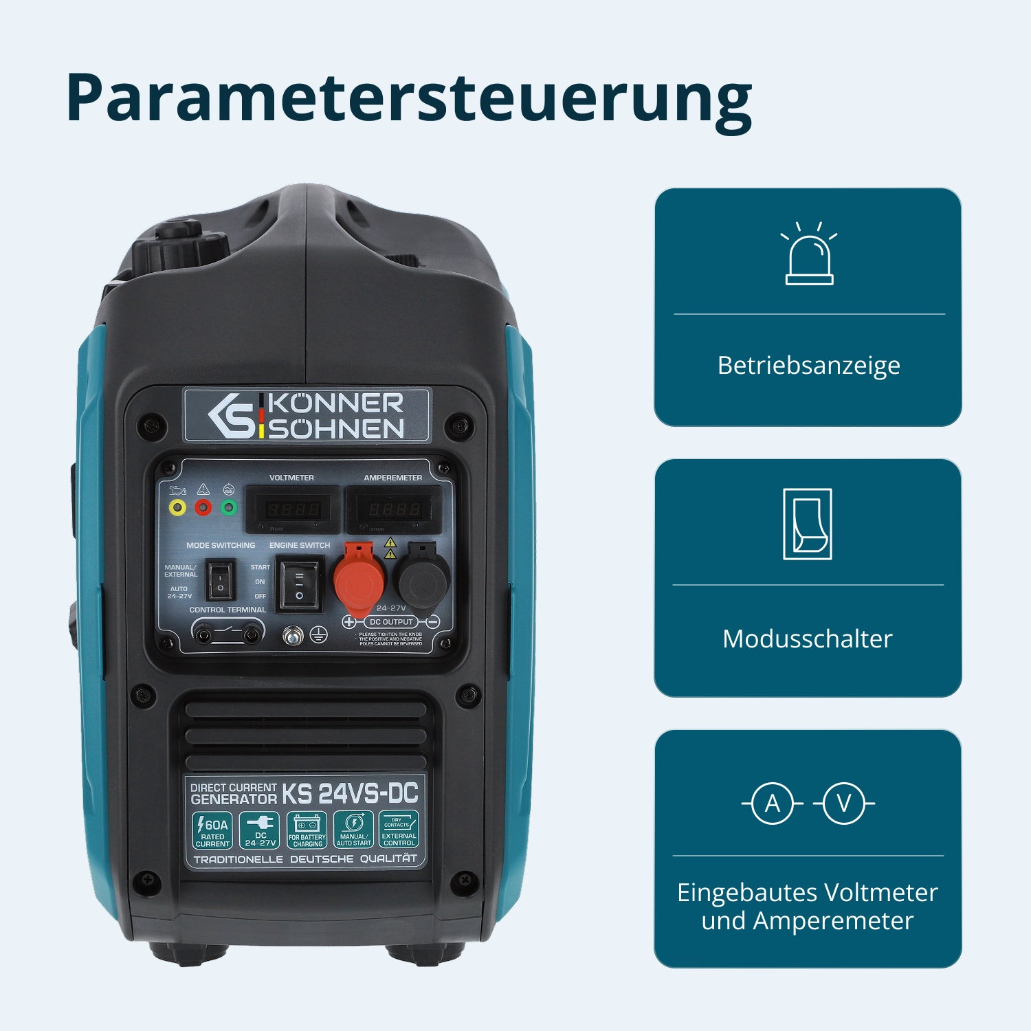 - Könner & Söhnen KS 24VS-DC – tai kompaktiškas ir efektyvus nuolatinės srovės generatorius, skirtas tiekti stabilų 24-27 V įtampos maitinimą.