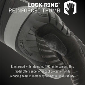 - Sutvirtintas TPR krumplių dizainas su integruotu „Lock Ring™“ raštu aplink nykštį, padidindamas patvarumą didelio nusidėvėjimo srityje ir nereikalaudamas pažeidžiamų siūlių.