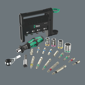 - Labai kompaktiškas 21 dalies įrankių rinkinys rankiniam ir mašininiam atsukimui