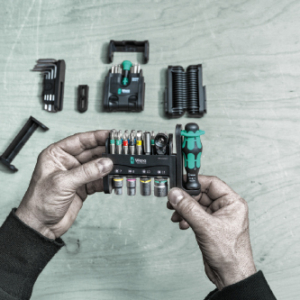 - Daugiakomponentė „Kraftform“ rankena su laikikliu 1/4 colio šešiakampiams antgaliams