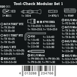 • „Tool-Check Modular 1“: 21 dalies įrankių rinkinys rankiniam ir mašininiam atsukimui