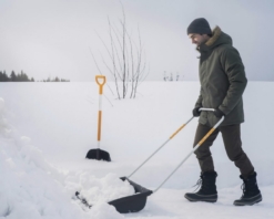 Fiskars SnowXpert™ stūmiklis su įlieta darbine dalimi stabilumui ir lengvumui, pagerintas ergonomiškas rankenų kampas, ilgos tvirtos vamzdinio plieno rankenos ir nauji ašmenys sukurti greitam ir efektyviam sniego kasimui didesniuose kiemuose ir kitose atvirose erdvėse.