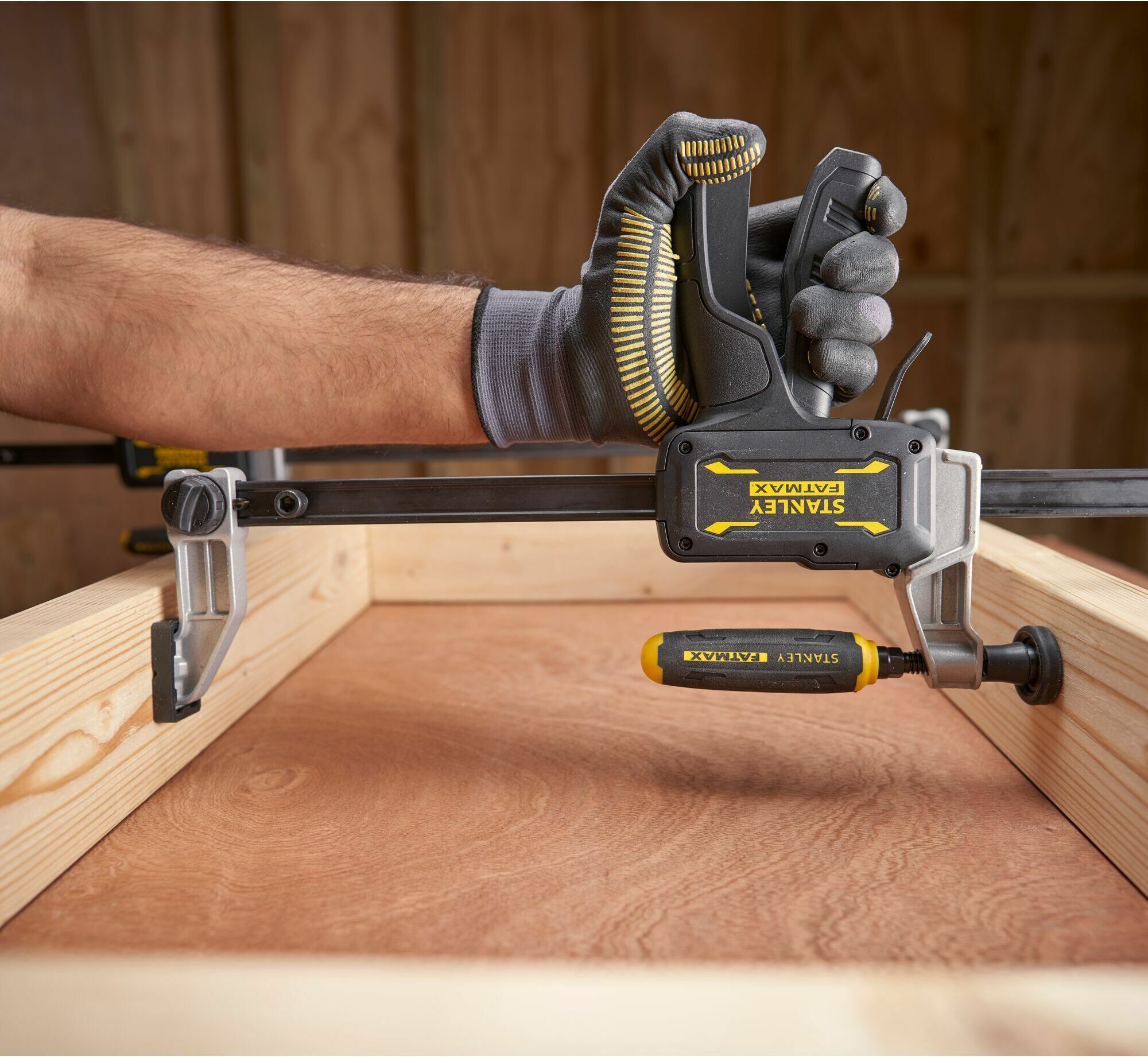 - Spaustuvas STANLEY FATMAX Hybrid FMHT83007-0 – aukštos kokybės vienos rankos spaustuvas su hibridiniu mechanizmu, skirtas profesionalams ir pažangiems meistrams.